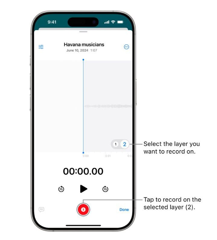 Apple has added a very useful feature to the iPhone 16 which will allow you to overlay recordings on voice memos. This feature will offer the possibility of record in layers separating your voice from the background so you can use it later in sound editing applications.